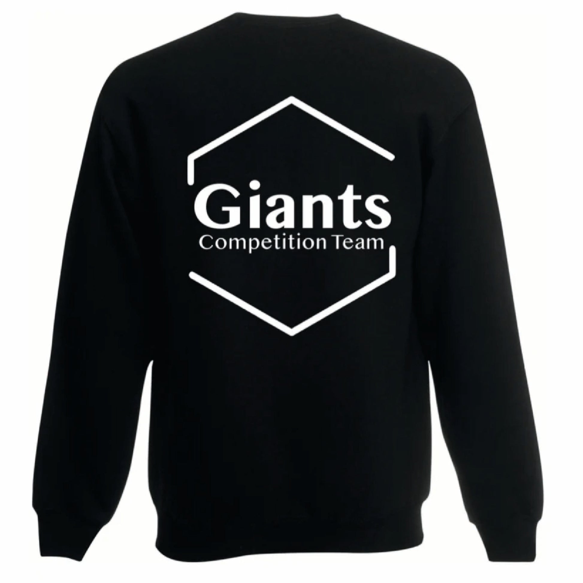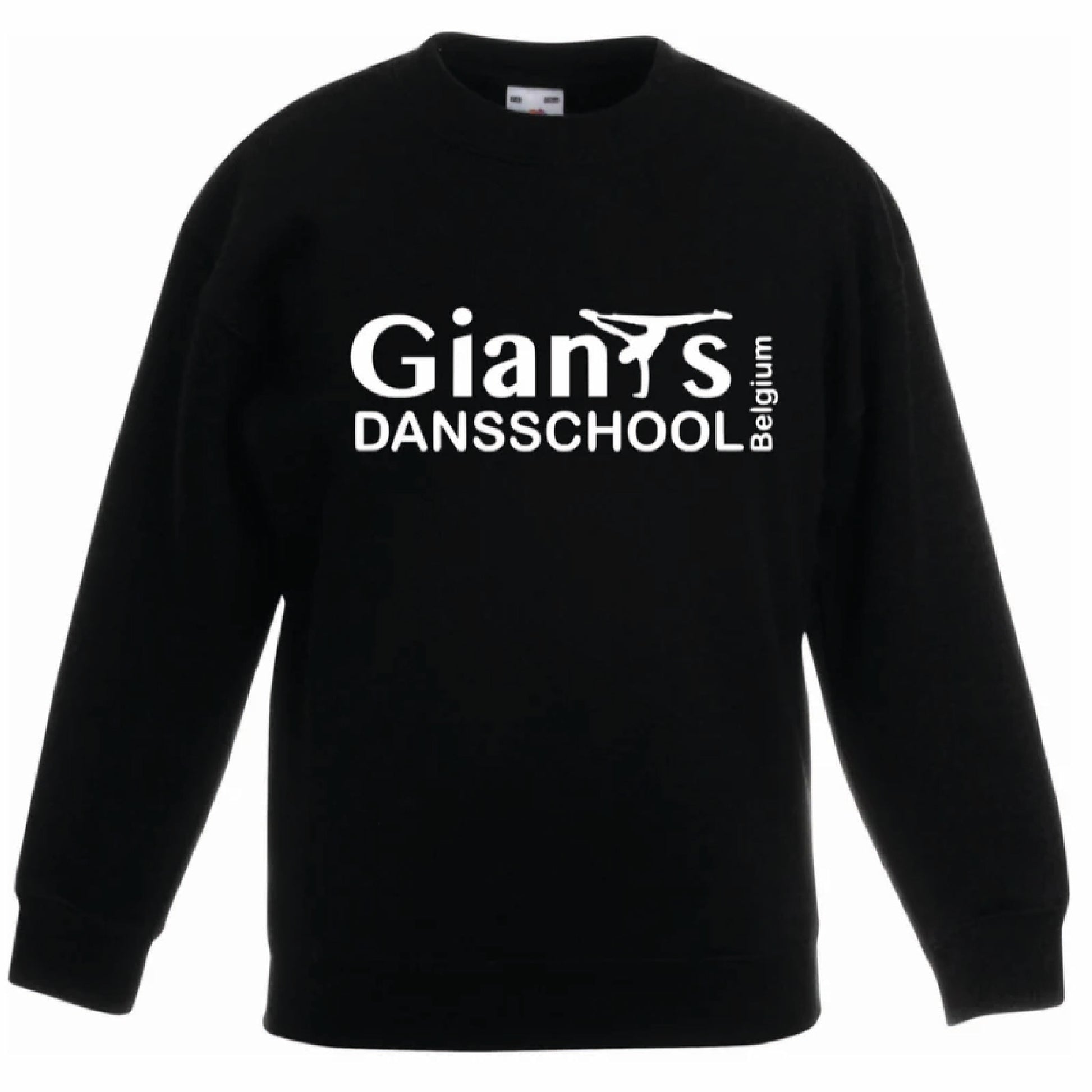Zwarte sweater met vooraan een groot, wit 'Giants Dansschool' logo. Achteraan het Giants Competition Team logo. Op de mouw een Belgische vlag met naam. Naambedrukking is verplicht.
