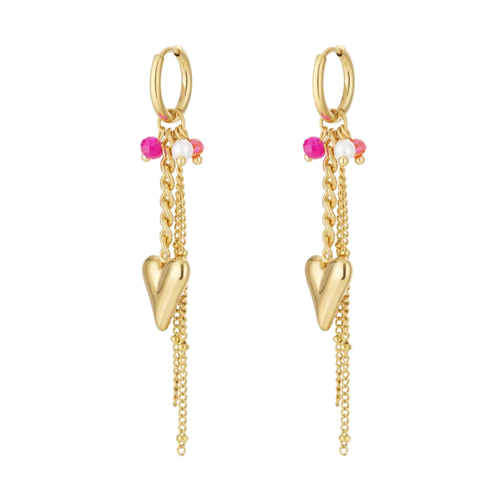 Geef je assortiment een romantische en luxe uitstraling met deze verfijnde lange oorhangers uit de Eenvoudige serie. Vervaardigd uit hoogwaardig stainless steel en afgewerkt met een 14K vergulde laag. De oorbellen zijn prachtig gedecoreerd met een combinatie van glanzende imitatieparels en schitterende kristallen, uitlopend in een elegant hartvormig bedeltje.